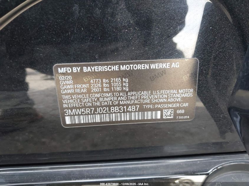 2020 BMW 3 SERIES 2020 року Бензин, 2.0, Повний привід, vin - 3MW5R7J02L8B31487 з США