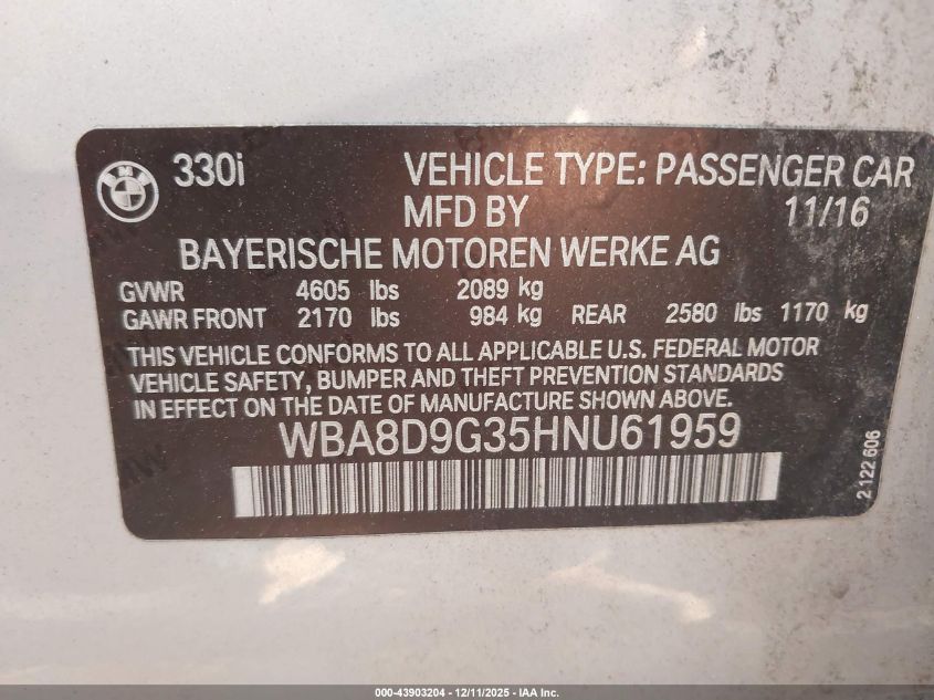 2017 BMW 3 SERIES 2017 року Бензин, 2.0, Повний привід, vin - WBA8D9G35HNU61959 з США