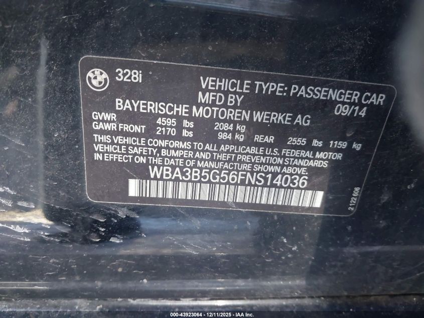 2015 BMW 3 SERIES 2015 року Бензин, 2.0, Повний привід, vin - WBA3B5G56FNS14036 з США