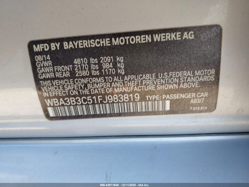 2015 BMW 3 SERIES 2015 року Бензин, 2.0, Повний привід, vin - WBA3B3C51FJ983819 з США