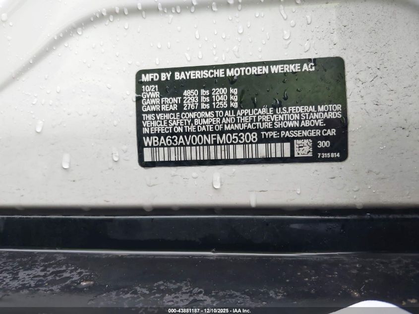 2022 BMW 4 SERIES 2022 року Бензин, 2.0, Задній привід, vin - WBA63AV00NFM05308 з США