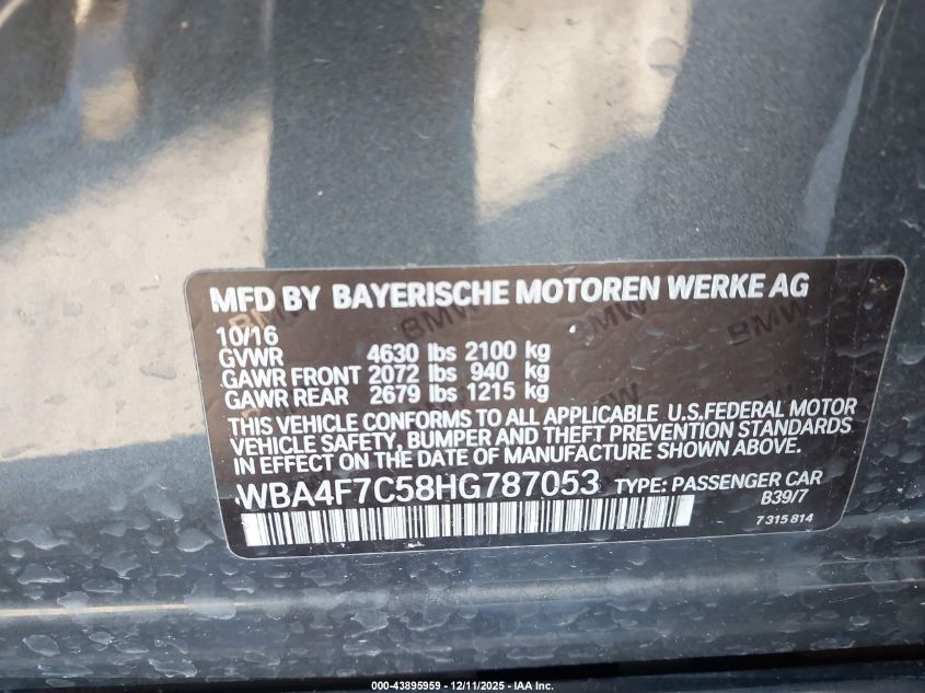 2017 BMW 4 SERIES 2017 року Бензин, 2.0, Задній привід, vin - WBA4F7C58HG787053 з США