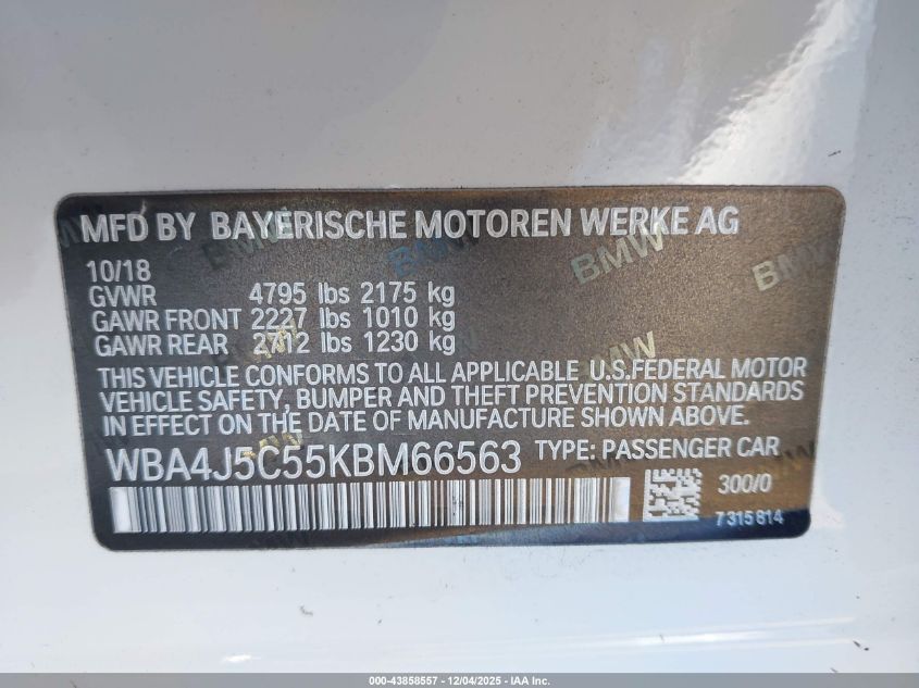 2019 BMW 4 SERIES 2019 року Бензин, 3.0, Задній привід, vin - WBA4J5C55KBM66563 з США