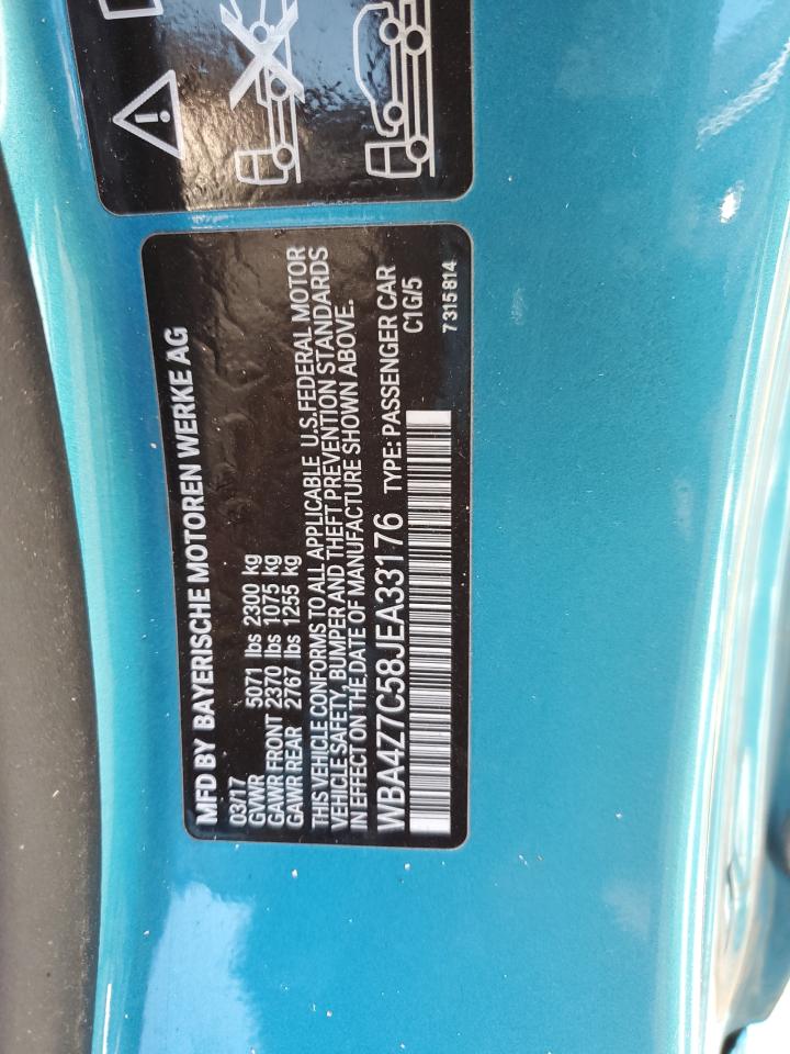 Колір БірюзовийЦиліндри 6Привід Повний привідVIN WBA4Z7C58JEA33176Стан ЗаводитьсяУшкодження Передня або задня AutoRIA