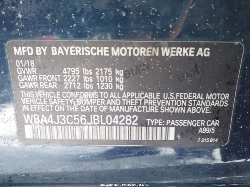 Колір ЧорнийЦиліндри 4Привід Повний привідVIN WBA4J3C56JBL04282Стан Заводиться та їде (перевірено)Ушкодження Передня або задня AutoRIA