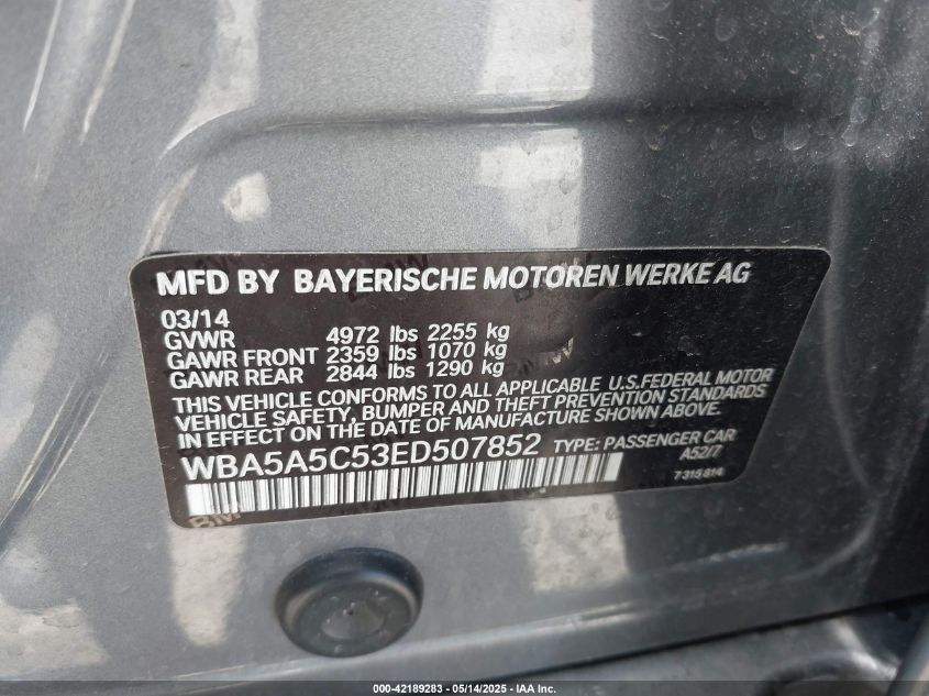 2014 BMW 5 SERIES 2014 року Бензин, 2.0, Задній привід, vin - WBA5A5C53ED507852 з США