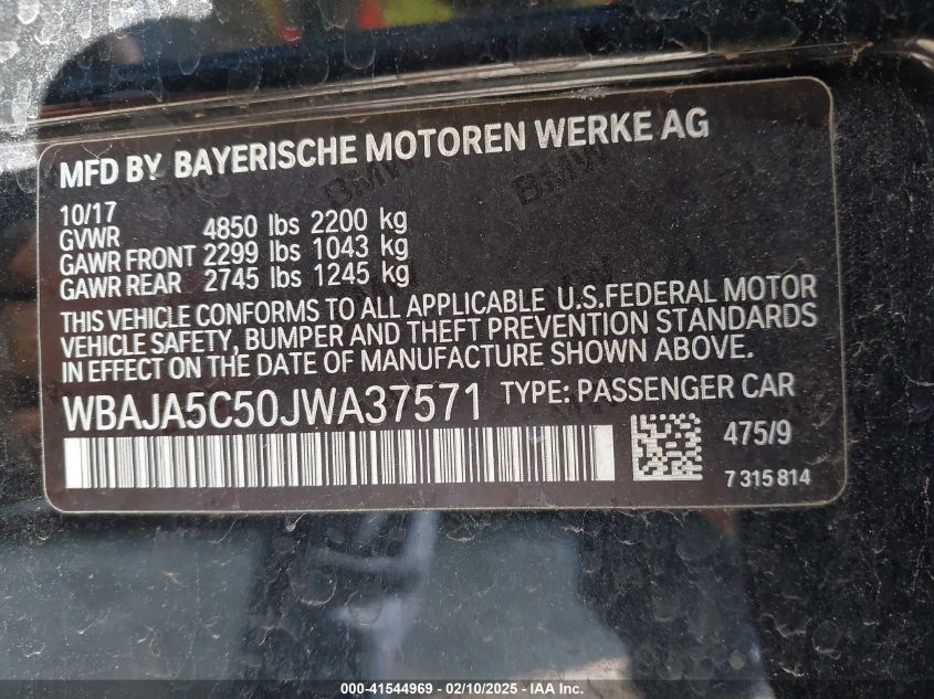 2018 BMW 5 SERIES 2018 року Бензин, 2.0, Задній привід, vin - WBAJA5C50JWA37571 з США
