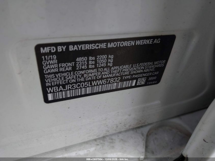 2020 BMW 5 SERIES 2020 року Бензин, 2.0, Задній привід, vin - WBAJR3C05LWW67832 з США