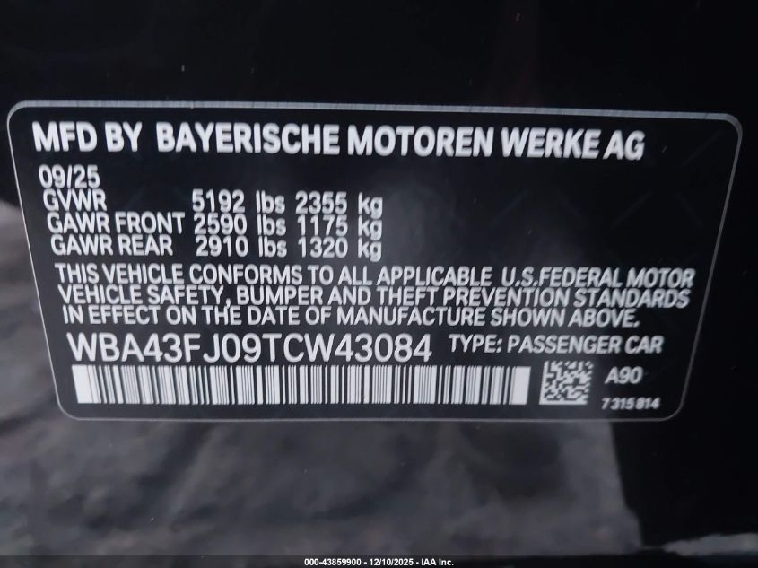 2026 BMW 5 SERIES 2026 року Бензин, 2.0, Задній привід, vin - WBA43FJ09TCW43084 з США