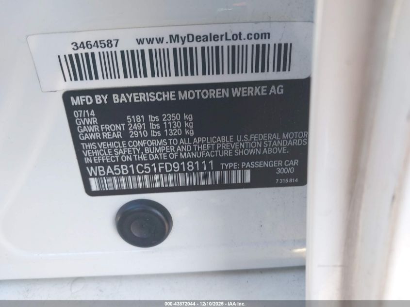 Колір БілийЦиліндри 6Привід Задній привідVIN WBA5B1C51FD918111Стан Заводиться та їде (перевірено)Ушкодження Передня або задня AutoRIA