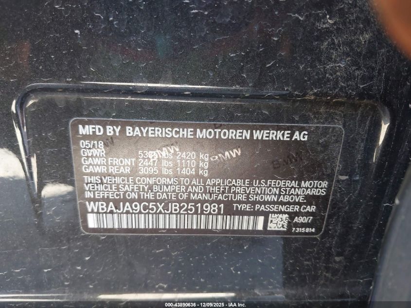 2018 BMW 5 SERIES 2018 року Гібрид, 2.0, Задній привід, vin - WBAJA9C5XJB251981 з США