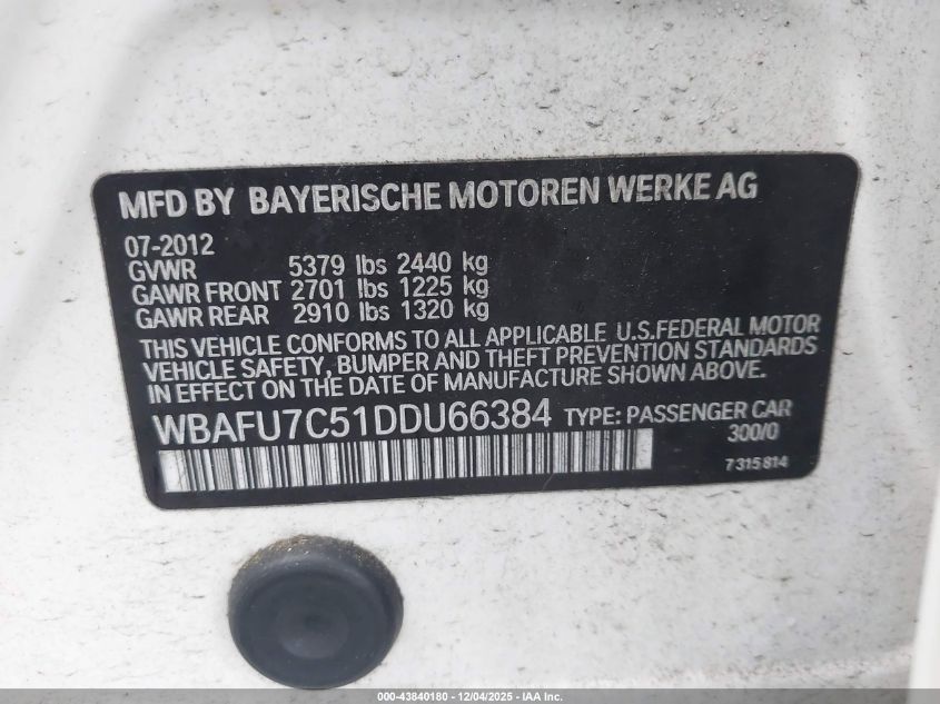 2013 BMW 5 SERIES 2013 року Бензин, 3.0, Повний привід, vin - WBAFU7C51DDU66384 з США