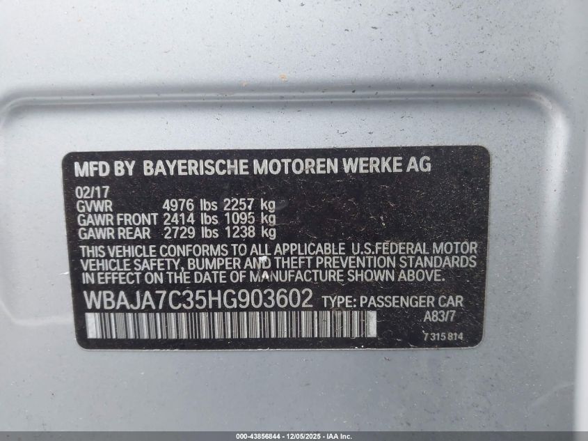 2017 BMW 5 SERIES I