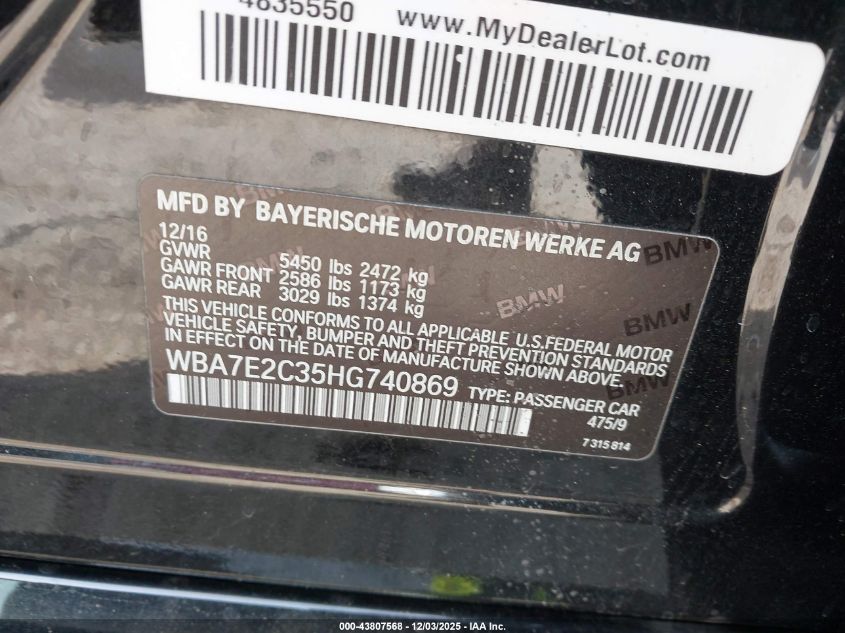 2017 BMW 7 SERIES 2017 року Бензин, 3.0, Задній привід, vin - WBA7E2C35HG740869 з США