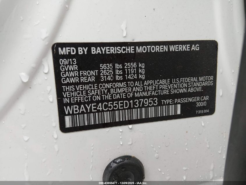 2014 BMW 7 SERIES 2014 року Бензин, 3.0, Задній привід, vin - WBAYE4C55ED137953 з США