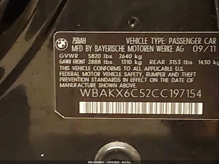 2012 BMW 7 SERIES 2012 року Гібрид, 4.4, Задній привід, vin - WBAKX6C52CC197154 з США