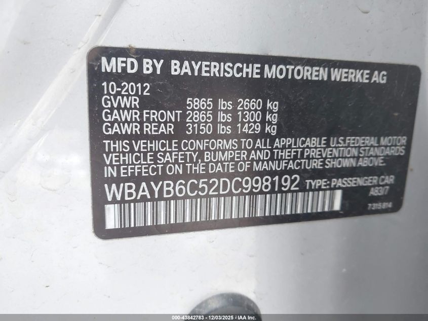 2013 BMW 7 SERIES 2013 року Бензин, 4.4, Повний привід, vin - WBAYB6C52DC998192 з США