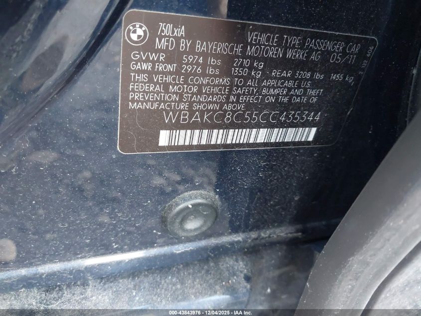 2012 BMW 7 SERIES 2012 року Бензин, 4.4, Повний привід, vin - WBAKC8C55CC435344 з США