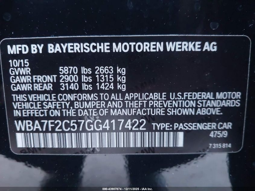 2016 BMW 7 SERIES 2016 року Бензин, 4.4, Повний привід, vin - WBA7F2C57GG417422 з США