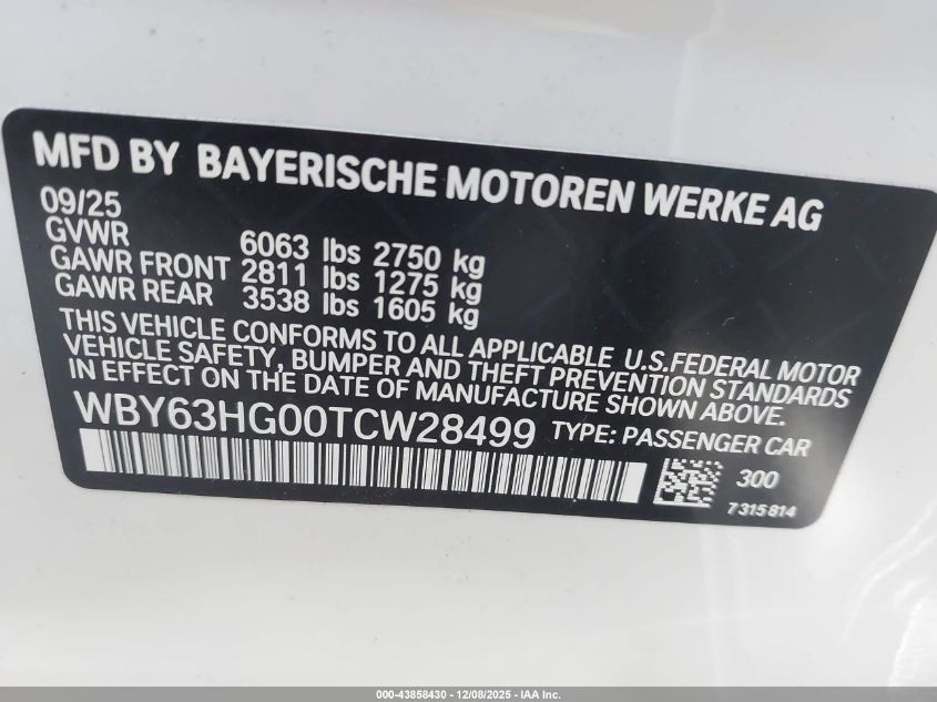 Колір БілийПривід Задній привідVIN WBY63HG00TCW28499Стан НевідомоУшкодження Передня або задня