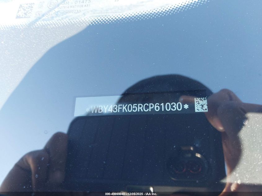 Колір СірийПривід Повний привідVIN WBY43FK05RCP61030Стан Заводиться та їде (перевірено)Ушкодження Передня права AutoRIA