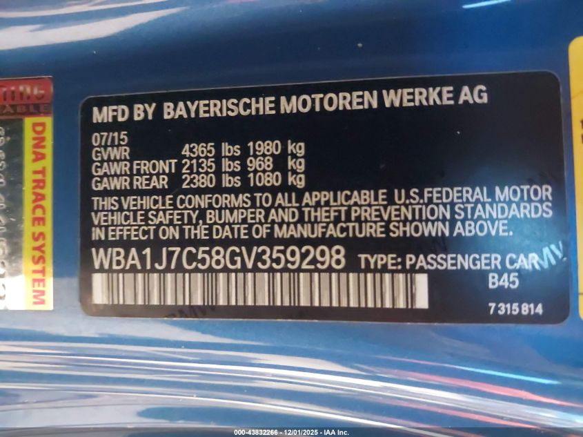 Колір СинійЦиліндри 6Привід Задній привідVIN WBA1J7C58GV359298Стан Заводиться та їде (перевірено)Ушкодження Передня права AutoRIA