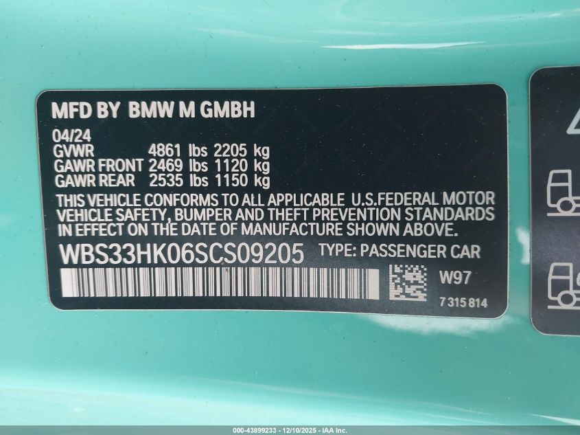 2025 BMW M4 2025 року Бензин, 3.0, Повний привід, vin - WBS33HK06SCS09205 з США