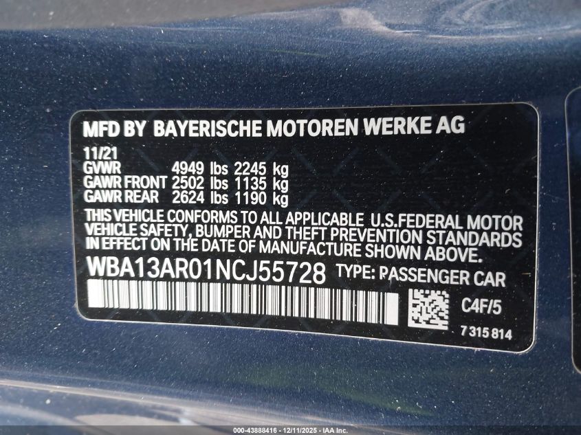 Колір СинійЦиліндри 6Привід Повний привідVIN WBA13AR01NCJ55728Стан СтаціонарноУшкодження Передня або задня AutoRIA