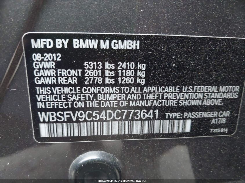 2013 BMW M5 2013 року Бензин, 4.4, Задній привід, vin - WBSFV9C54DC773641 з США