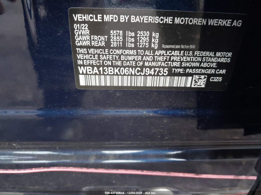 Колір СинійЦиліндри 8Привід Повний привідVIN WBA13BK06NCJ94735Стан СтаціонарноУшкодження Задня AutoRIA