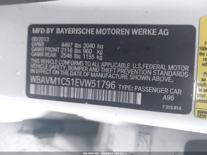 Колір БілийЦиліндри 4VIN WBAVM1C51EVW51796Стан Заводиться та їде (перевірено)Ушкодження Механічні пошкодженняДата аукціону 2025-12-10 AutoRIA