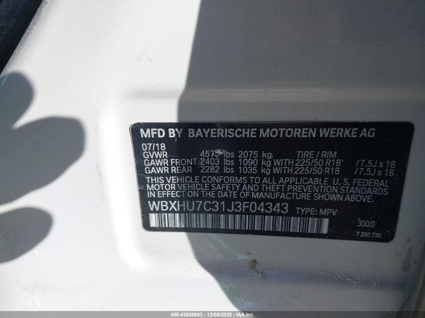 Колір БілийЦиліндри 4Привід Передній привідVIN WBXHU7C31J3F04343Стан СтаціонарноУшкодження Перекидання AutoRIA