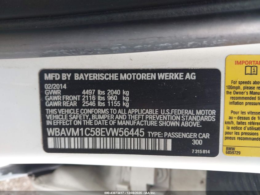 Колір БілийЦиліндри 4VIN WBAVM1C58EVW56445Стан Заводиться та їде (перевірено)Ушкодження Передня ліва AutoRIA