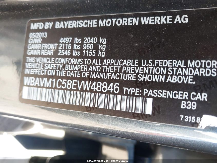Колір СірийЦиліндри 4VIN WBAVM1C58EVW48846Стан СтаціонарноУшкодження Передня або задня AutoRIA