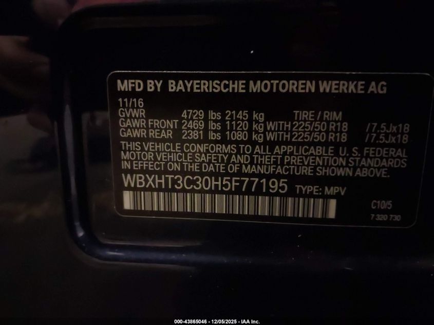 Колір СинійЦиліндри 4Привід Повний привідVIN WBXHT3C30H5F77195Стан Заводиться та їде (перевірено)Ушкодження Передня або задня AutoRIA