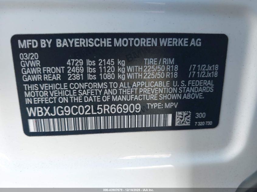 2020 BMW X1 2020 року Бензин, 2.0, Повний привід, vin - WBXJG9C02L5R66909 з США