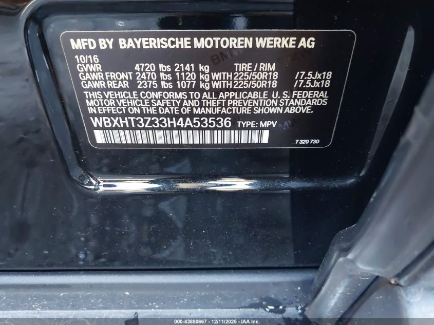 Колір ЧорнийЦиліндри 4Привід Повний привідVIN WBXHT3Z33H4A53536Стан НевідомоУшкодження Передня або задня AutoRIA