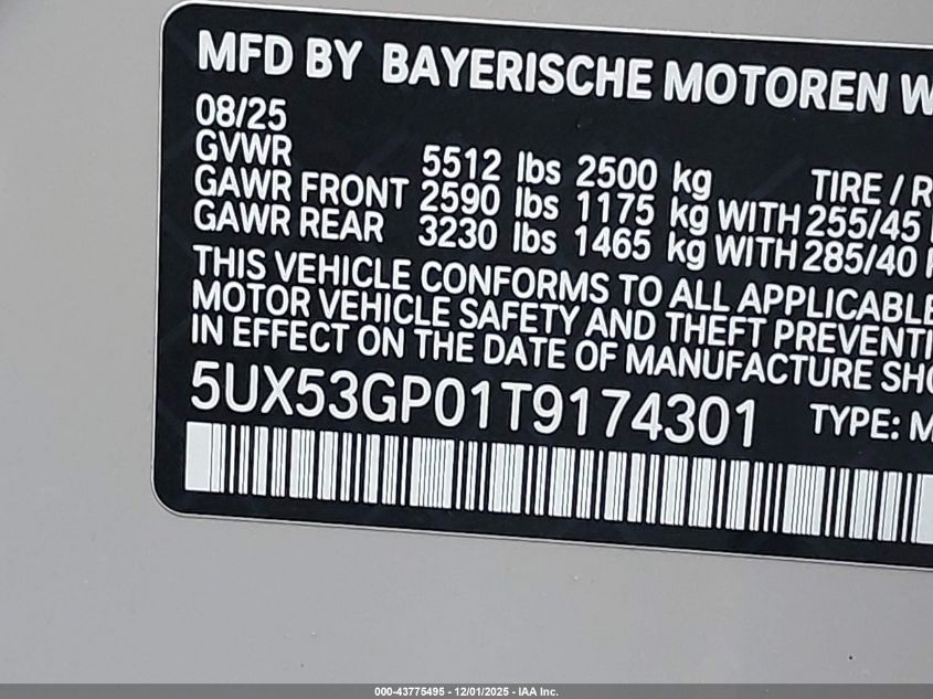 2026 BMW X3 2026 року Бензин, 2.0, Повний привід, vin - 5UX53GP01T9174301 з США