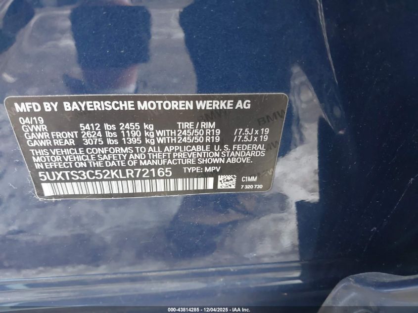 2019 BMW X3 2019 року Бензин, 3.0, Повний привід, vin - 5UXTS3C52KLR72165 з США