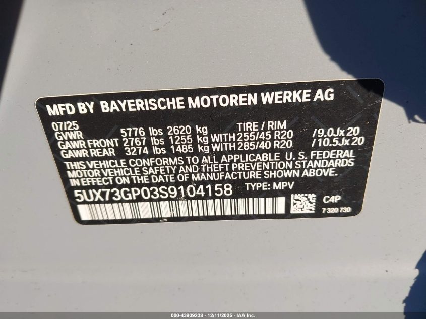 2025 BMW X3 2025 року Бензин, 3.0, Повний привід, vin - 5UX73GP03S9104158 з США