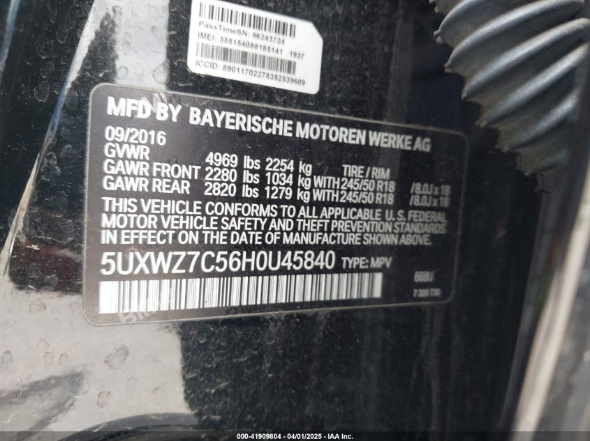 Колір ЧорнийЦиліндри 4VIN 5UXWZ7C56H0U45840Стан Заводиться та їде (перевірено)Ушкодження Ліва сторонаДата аукціону 2025-12-16 AutoRIA