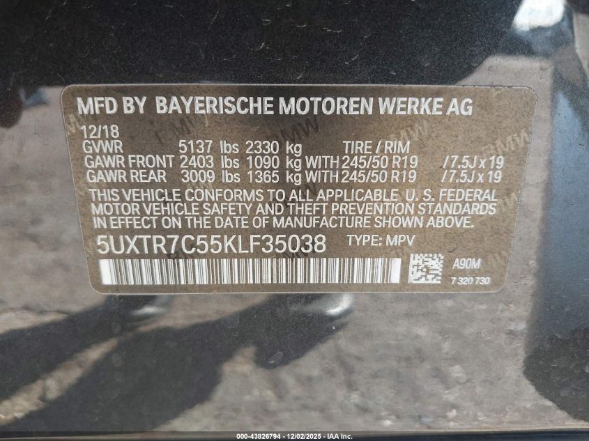 2019 BMW X3 2019 року Бензин, 2.0, , vin - 5UXTR7C55KLF35038 з США