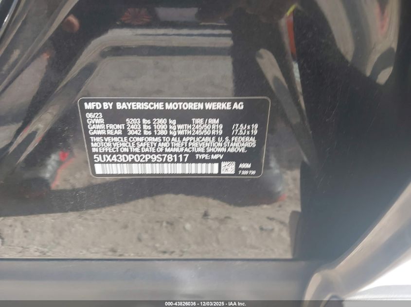 2023 BMW X3 2023 року Бензин, 2.0, , vin - 5UX43DP02P9S78117 з США
