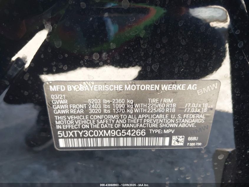 2021 BMW X3 2021 року Бензин, 2.0, , vin - 5UXTY3C0XM9G54266 з США