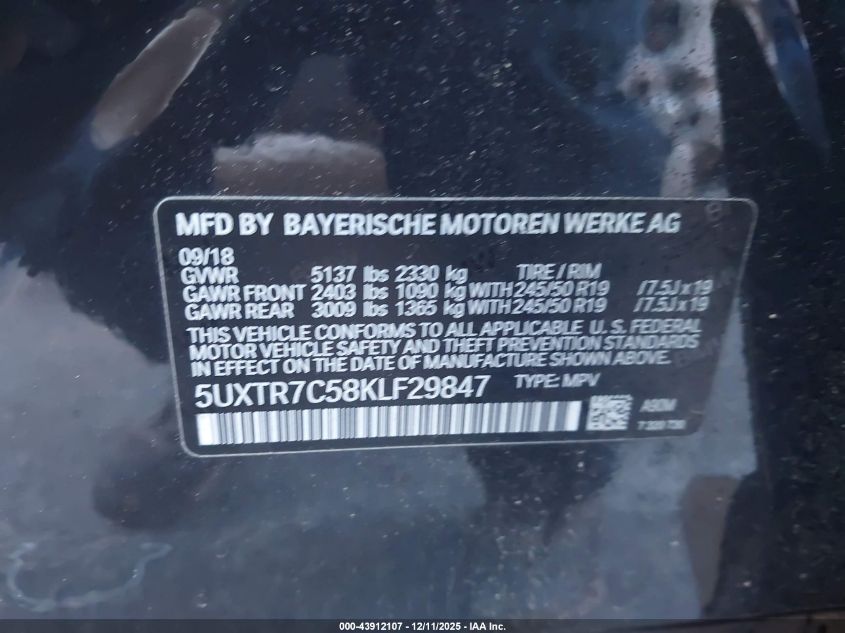 2019 BMW X3 2019 року Бензин, 2.0, , vin - 5UXTR7C58KLF29847 з США