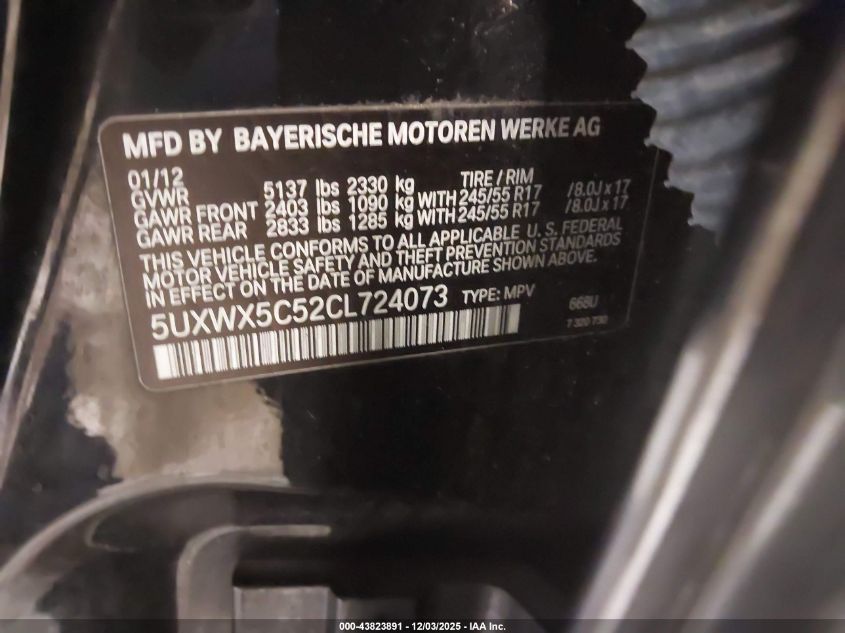 2012 BMW X3 2012 року Бензин, 3.0, Повний привід, vin - 5UXWX5C52CL724073 з США