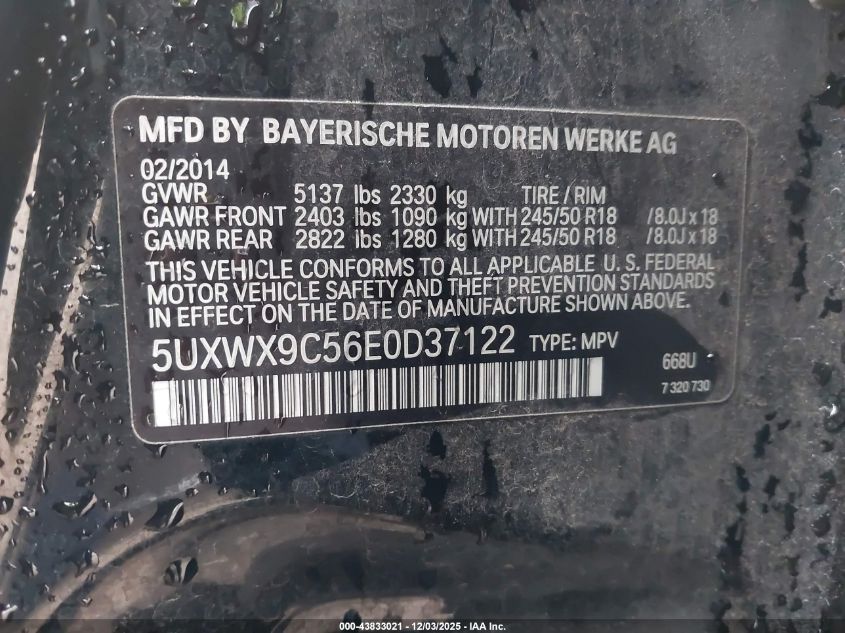 2014 BMW X3 2014 року Бензин, 2.0, Повний привід, vin - 5UXWX9C56E0D37122 з США