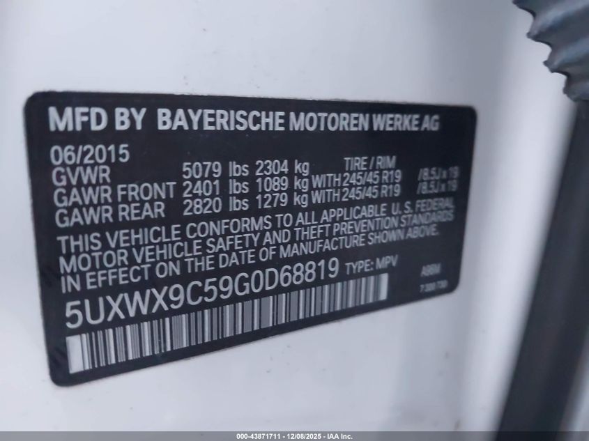 Колір БілийЦиліндри 4Привід Повний привідVIN 5UXWX9C59G0D68819Стан СтаціонарноУшкодження Передня або задня AutoRIA