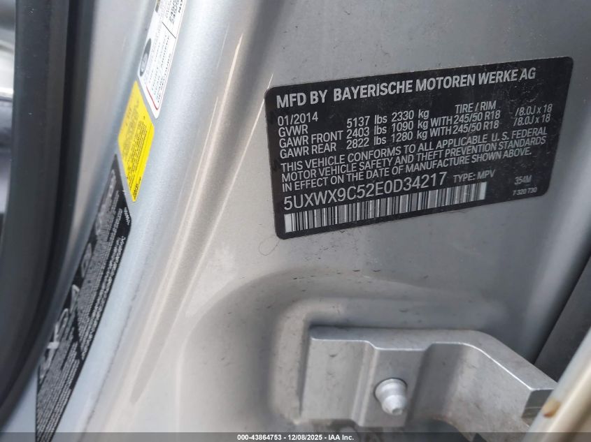 2014 BMW X3 2014 року Бензин, 2.0, Повний привід, vin - 5UXWX9C52E0D34217 з США