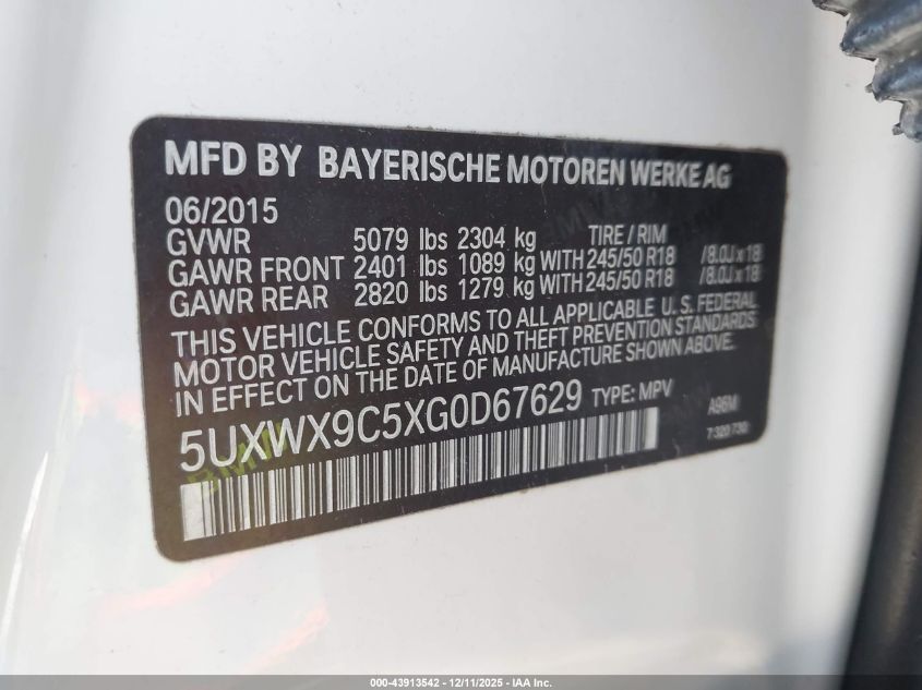 2016 BMW X3 2016 року Бензин, 2.0, Повний привід, vin - 5UXWX9C5XG0D67629 з США